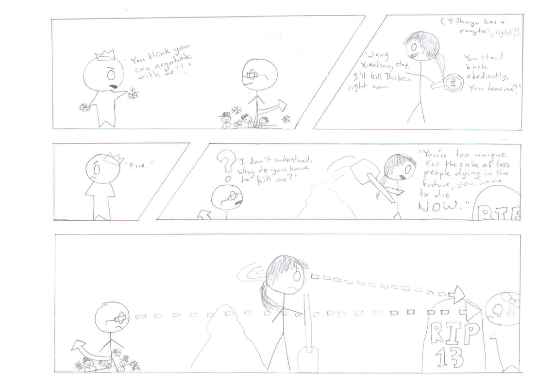 “You are so unique. To reduce the number of people who will die in the future, you must now die.” I have absolutely no confidence that he will not kill anyone outside of mealtime. The easiest way is to kill him and send him to the next world! RIP thirteen!